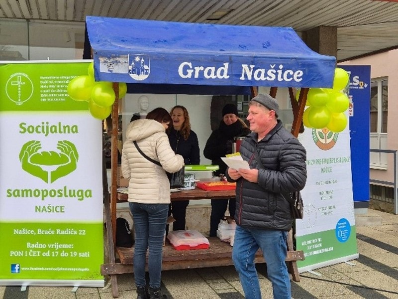 U sklopu manifestacije „Mali grad velikog srca“ a na adresi Braće Radića 15 u Našicama, u novom prostoru Udruge službeno je otvoren Centar za prehrambenu sigurnost, projekt koji se razvio kao proširenje postojećih usluga Socijalne samoposluge. Glavni ciljevi Centra su osigurati stabilnu, sigurnu i održivu opskrbu hranom, jačati lokalnu zajednicu i suradnju s partnerima te smanjiti prehrambenu nesigurnost na području Grada Našica. Centar daje poseban naglasak na savjetodavne i edukativne radionice, podršku korisnicima u boljem upravljanju resursima hrane, širenje prepoznatljivosti Centra te aktivno uključivanje građana kroz brojne aktivnosti. Osim podjele hrane Udruga kroz ovaj projekt želi podići razinu osviještenosti o smanjenju otpada od hrane, izgradnji gradskih vrtova i održivoj prehrani.